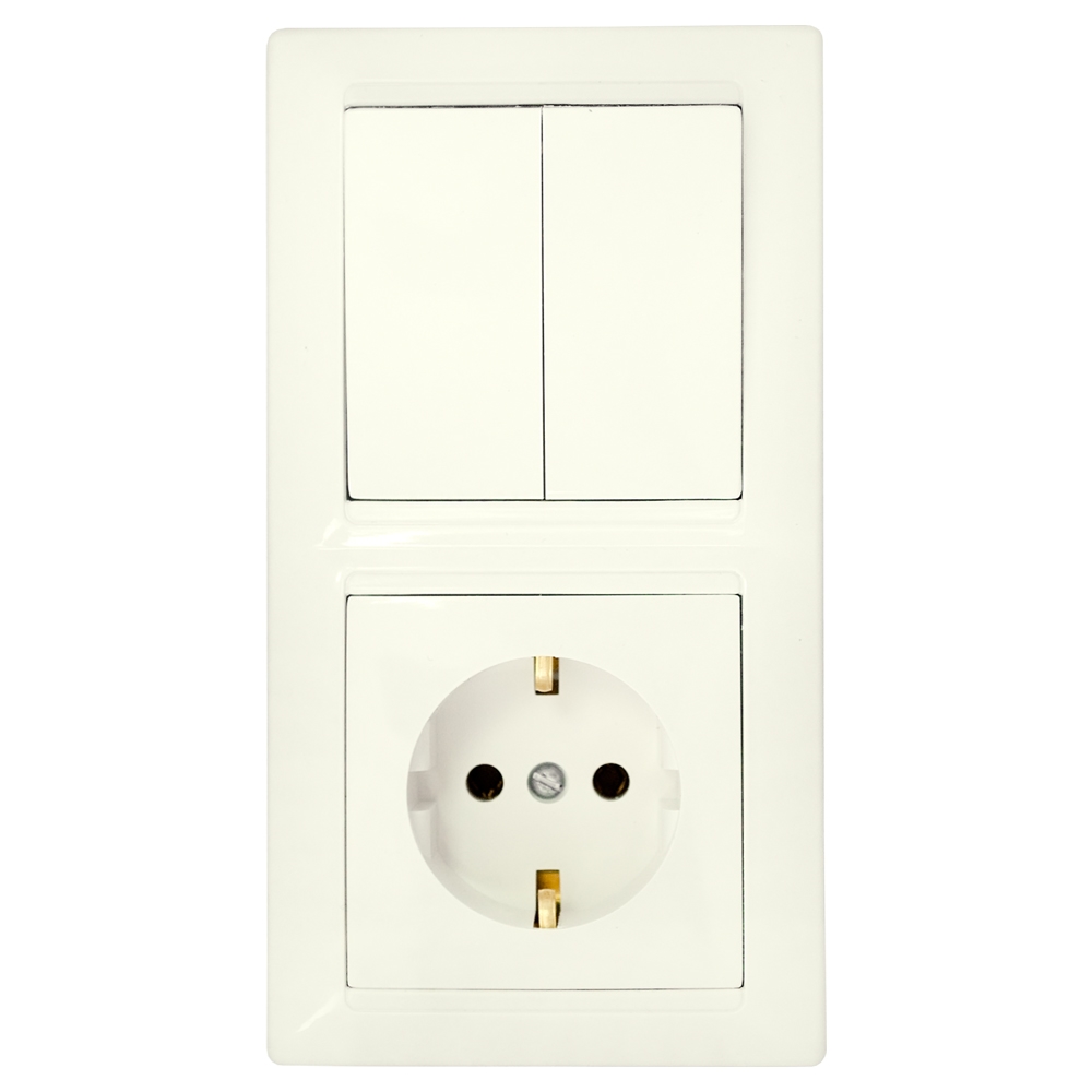 Блок (выкл. 2-клав.10А+розетка с земл.16А) скр.уст.,220.250 В, 50Гц, IP20, УХЛ4, габ.разм. 153х80х56 мм, уст.разм.: 130х67х41 мм,сеч.пров.:выкл. 1,0-2,5мм?,роз. 1,5-2,5мм? Код: 05417