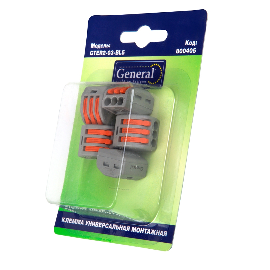 Клемма 3 провод. серая с рычагом (блистер 5шт) GTER1-03-BL5 General 800405