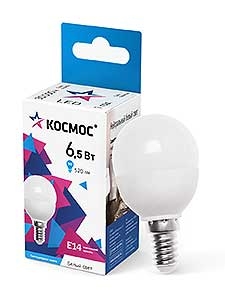 Светодиодная лампочка 6,5 Вт является аналогом лампы накаливания «шарик» 50 Вт – для средней комнаты понадобится 5 таких лампочек. Стабильный свет без падения яркости в течение всего срока службы (30 000 часов) – за счет использования светодиодов известных производителей. Лампа работает в диапазоне от 174В до 265В - не перегорит и не потеряет яркость при скачках напряжения в сети.
