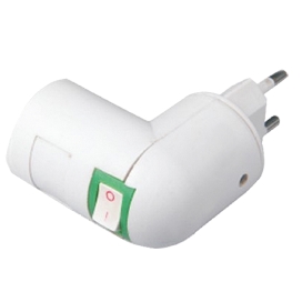 Переходник вилка-патрон Е27 с выкл. Белый ECOLA