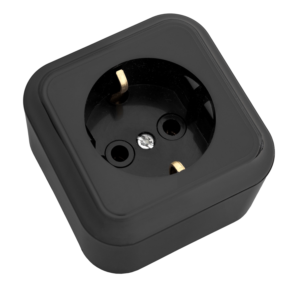 Розетка 1-местн. с земл., откр. уст., 220.250 В, 50Гц, 16А, IP20,УХЛ4, габ.разм.: 65х65х41 мм; уст.разм.: 38±0,6, сеч.пров. 1,5-2,5 мм2 Код: