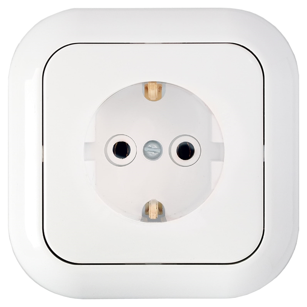 Розетка 1-местн. с земл., скр.уст., 220.250 В, 50Гц, 16А, IP20, УХЛ4, габ.разм.: 80х80х40 мм; уст.разм.: 65…75 мм, сеч.пров. 1,5-2,5 мм2 Код: