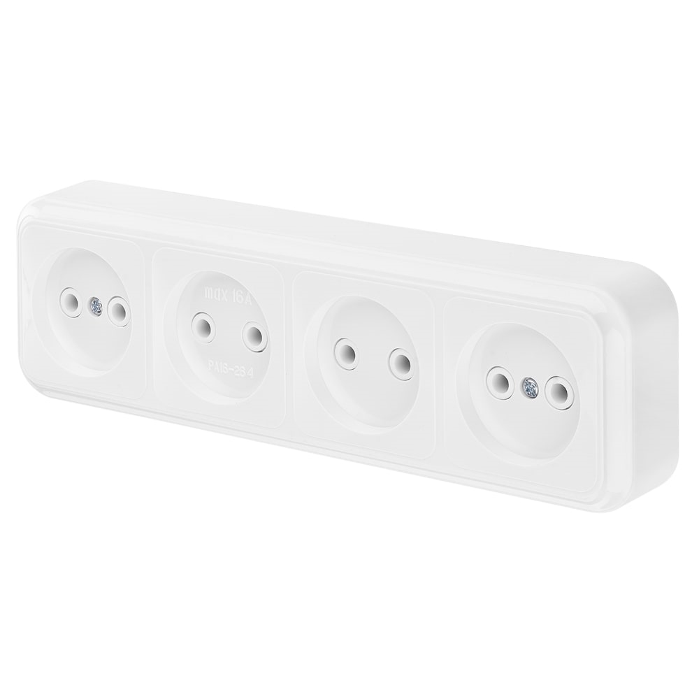 Розетка 4-местн. откр. уст., 220.250 В, 50Гц, 16А, IP20,УХЛ4, габ.разм.: 220х65х29 мм; уст.разм.: 190х47±0,2, сеч.пров. 1,5-2,5 мм2 Код: РА16-264