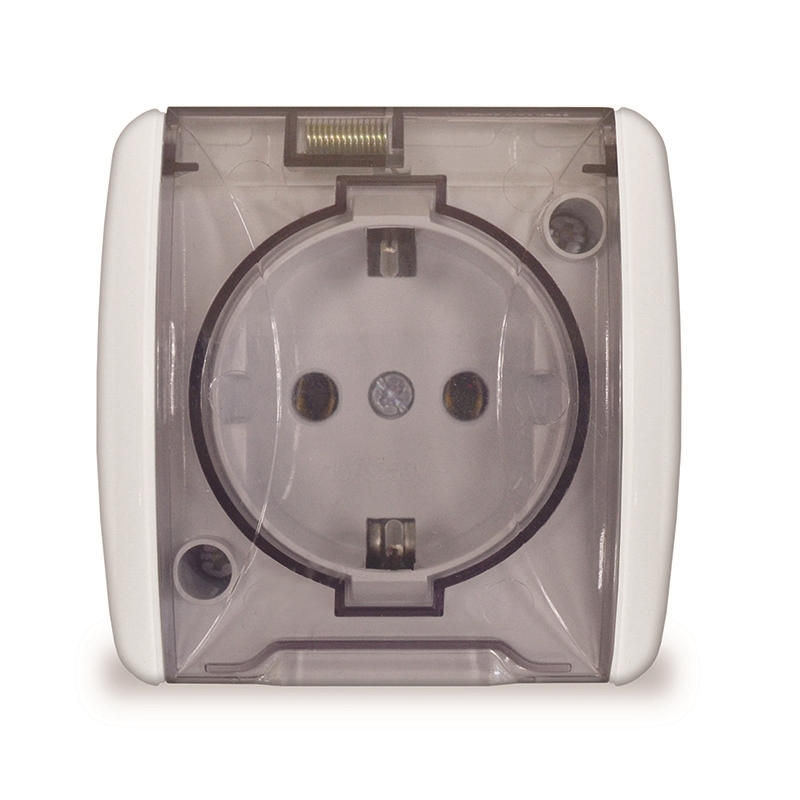 Розетка 1м с крышкой с/з, о/у, бел. IP44 "Клио" К2229 UNIVersal