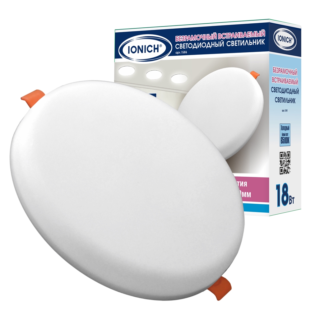 Свет. LED круг встр. безрам.18Вт 1400Лм 230В 6500K 120мм IP20 IONICH UNIVersal