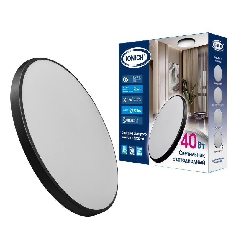 Светильник светодиодный быстрого монтажа ТМ IONICH IDPB-SnapIn 40Вт 3600Лм 5000К 370мм IP40 черный 2