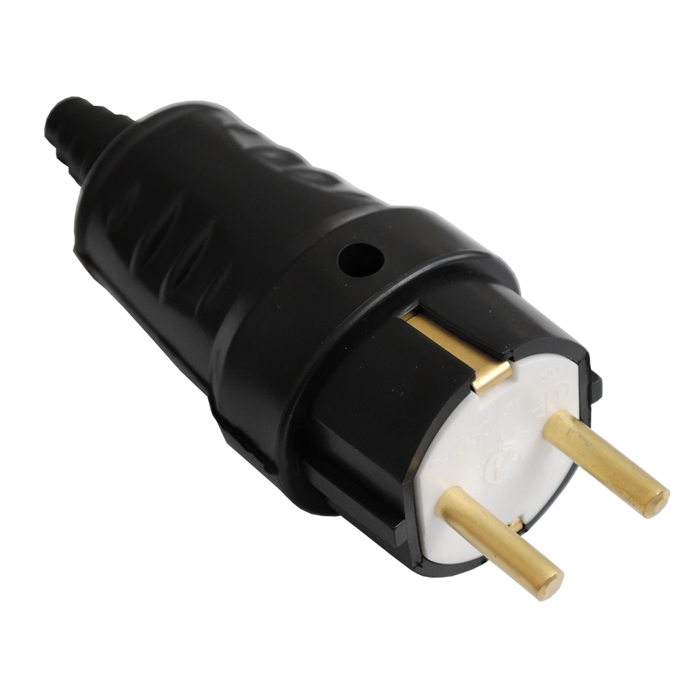 Вилка прямая 16А с земл. (каучук) (В16-362)