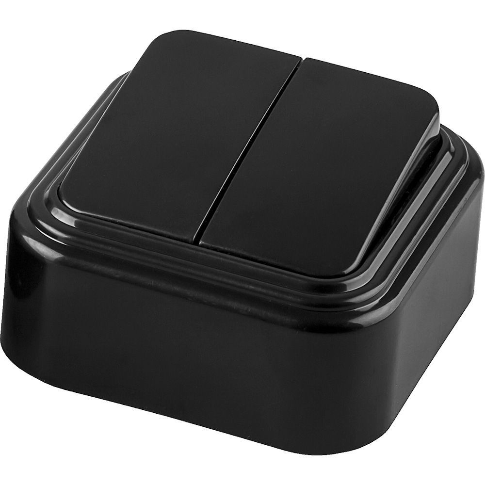 Выключатель 2-клав., откр.уст., 6А, 220.250 В, 50Гц, УХЛ4, IP20, габ.разм.: 65х65х41 мм; уст.разм.: 38±0,6, сеч.пров. 0,75-2,5 мм2 Код:А56-134 чер