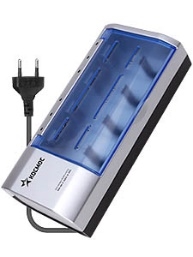 Классическое зарядное устройство «на ночь» - отключите по времени (указано в инструкции) в зависимости от ёмкости аккумулятора (среднее время заряда - 12-14 часов). Может зарядить 4 Ni-MH или Ni-Cd аккумулятора размера АА, ААА, С, D или 2 аккумулятора типа «Крона». Шнур питания (в комплекте) позволяет разместить устройство в удобном месте. Код: 46611