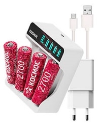В комплекте 4 аккумулятора АА 2700 мАч.